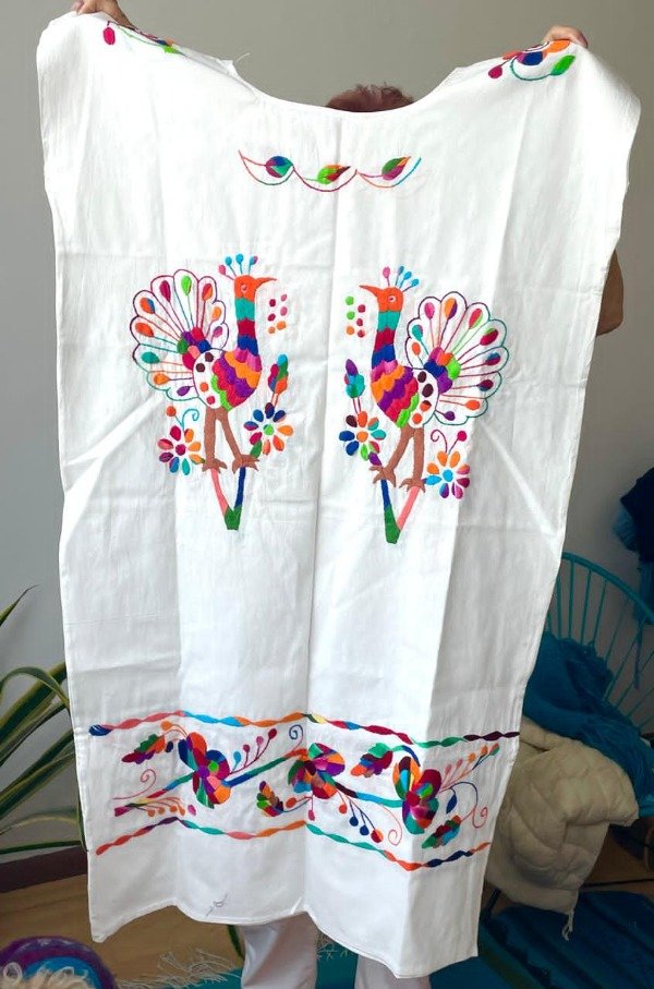 Vestido de algodón bordado de ambos lados con estilo tenango